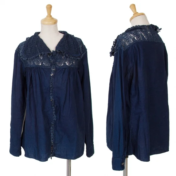 キャピタルKAPITAL レース切替リネンブラウス 青S
