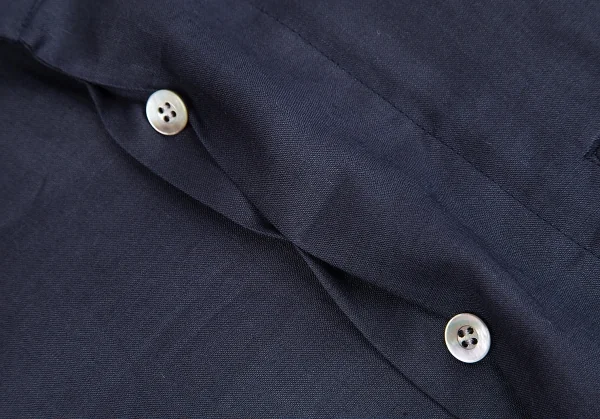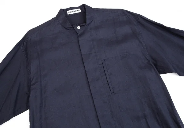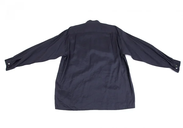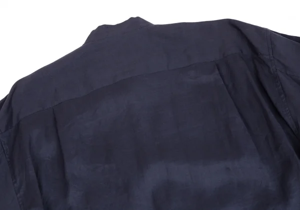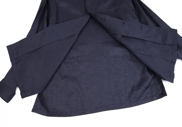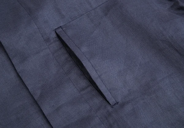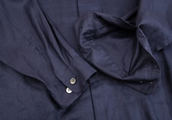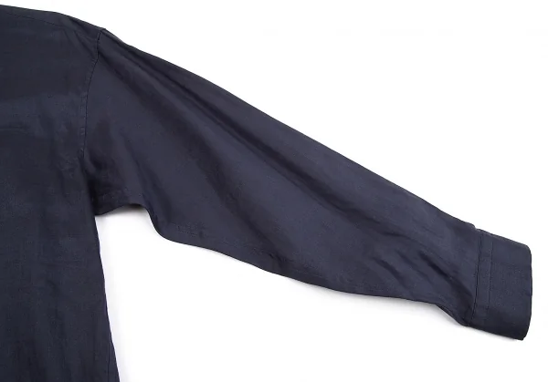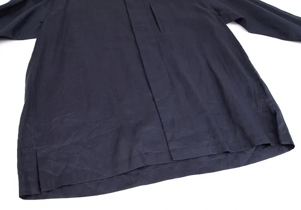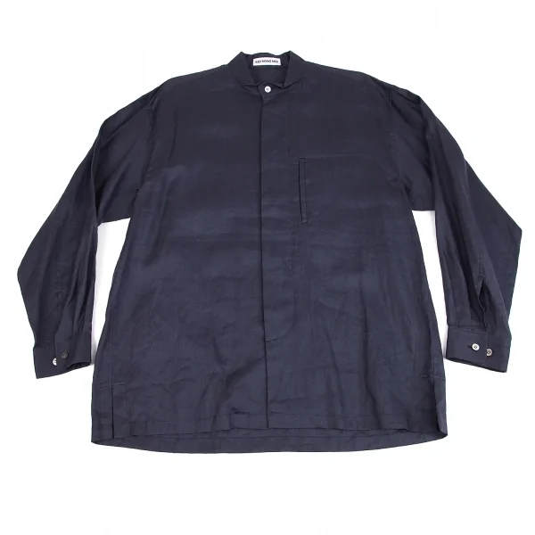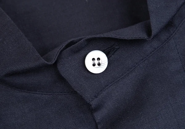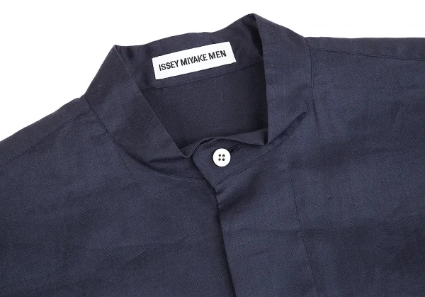 イッセイミヤケ メンISSEY MIYAKEMEN マオカラーフライフロントリネン長袖ロングシャツ 紺M