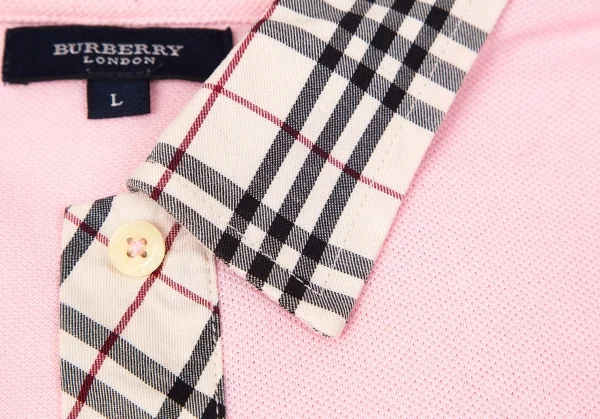 バーバリーBURBERRY LONDON ノバチェック襟切替ポロシャツ ピンクL