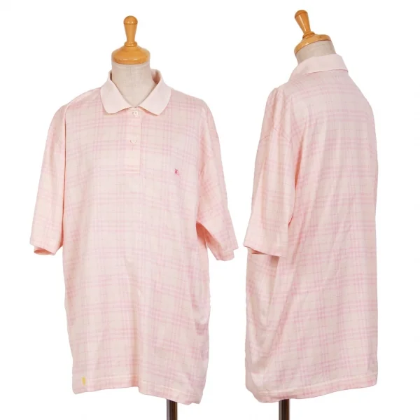 バーバリーBURBERRY LONDON ノバチェックプリントポロシャツ 淡ピンクXL