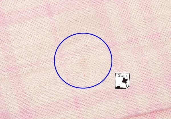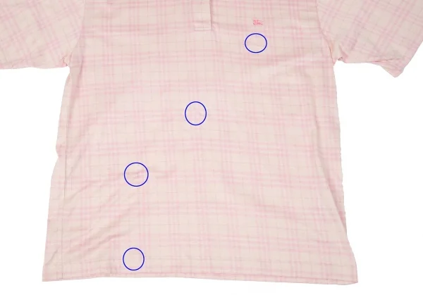 若干の透け感があります。前身頃に薄シミあり、品質表示タグに名前の書き込みがあります(画像参照)。その他目立ったシミ、汚れ、ほつれ等ありません。クリーニング済み
