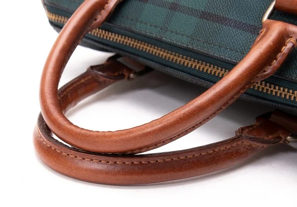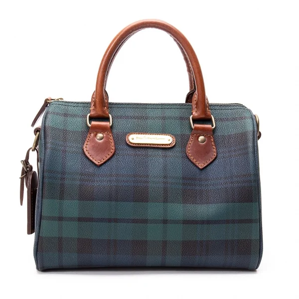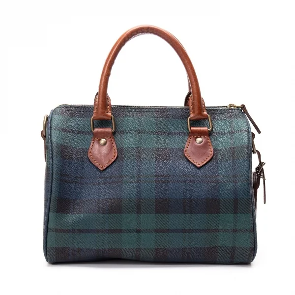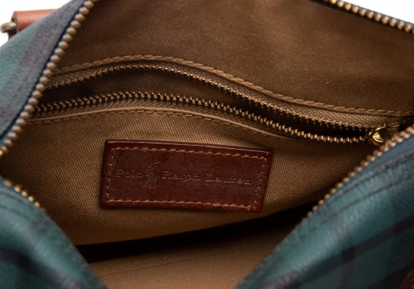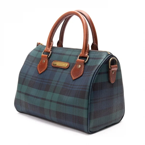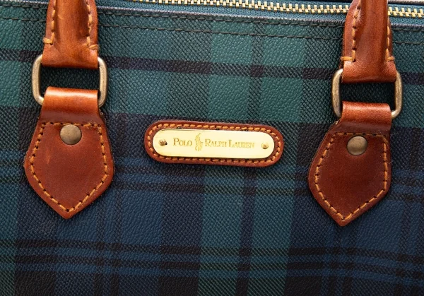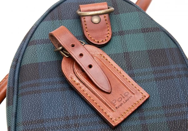 ポロラルフローレンPOLO RALPH LAUREN チェックプリントミニボストンバッグ 緑茶