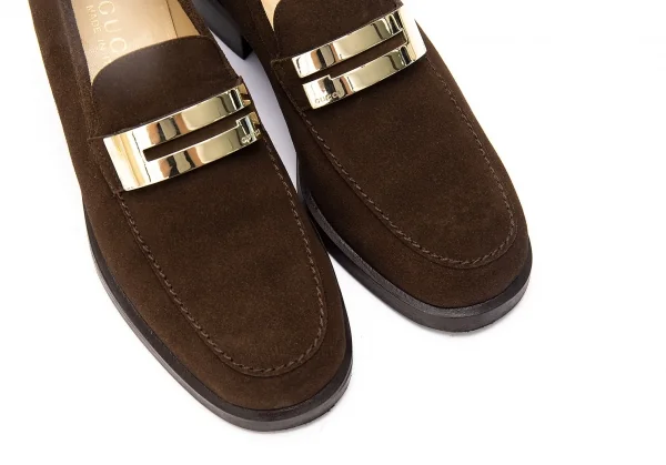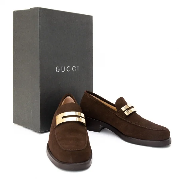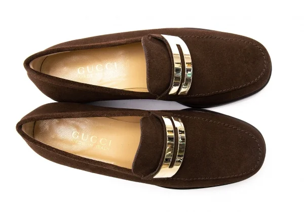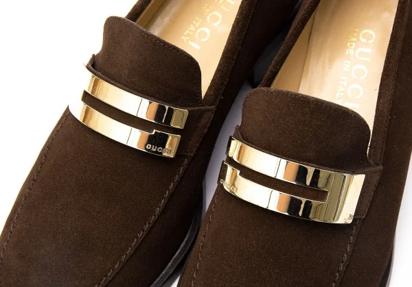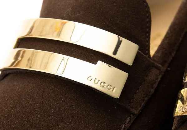 グッチGUCCI Gバックルスウェードローファー 茶6B(23位)