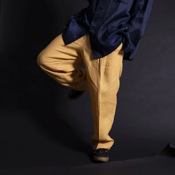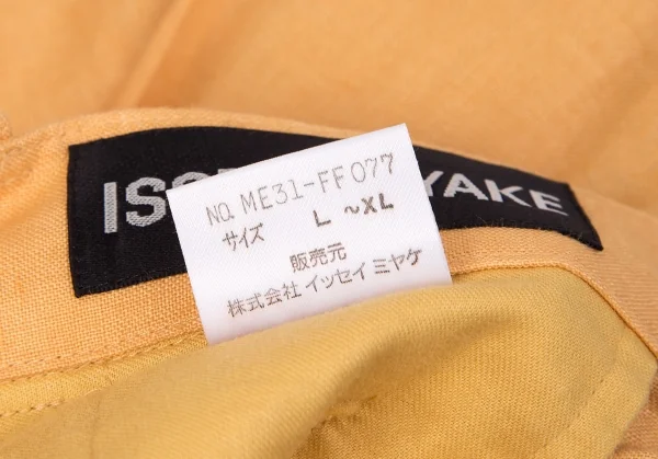 イッセイミヤケ メンISSEY MIYAKE MEN パンチングリネンゴムウエストパンツ オレンジL位