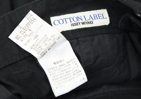 【SALE】イッセイミヤケ メン コットンレーベルISSEY MIYAKE MEN COTTON LABEL バックギャザー2タックデザインコットンリネンパンツ 黒4