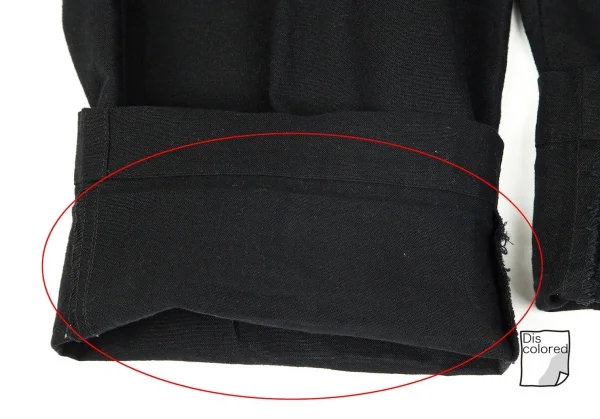 裾に折り返し跡、裾裏・ヒップに色褪せがあります(画像参照)。その他目立ったシミ、汚れ、ほつれ等ありません。クリーニング済み