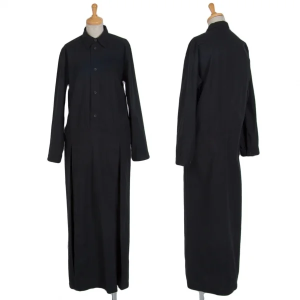 ワイズY's ボックスプリーツ切替マキシプルオーバーシャツワンピース 黒3