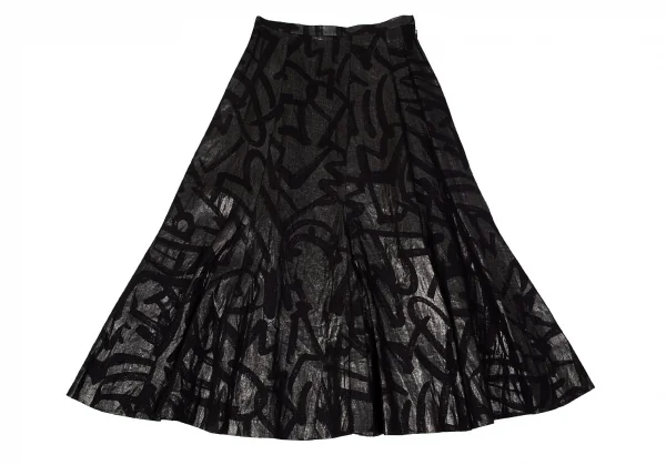 【SALE】ホンマHOMMA リネンメタリックプリントスカート 黒シルバー3