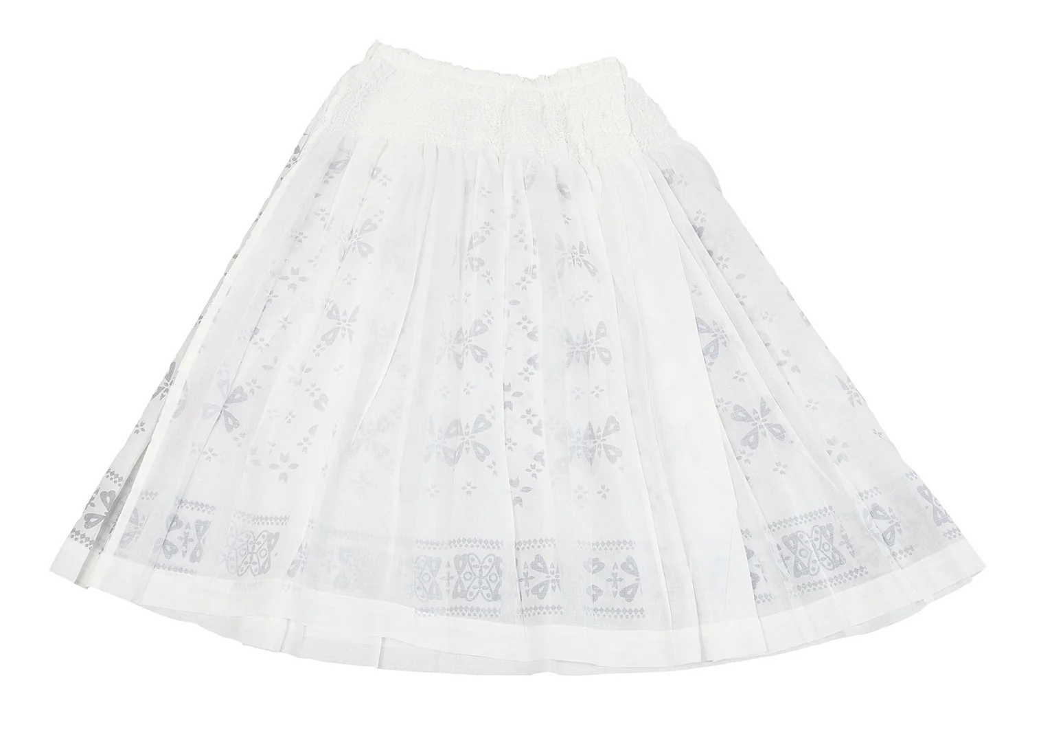 【SALE】イッセイミヤケミーISSEY MIYAKE me カリフラワーウエストプリントシースルースカート 白グレーM位