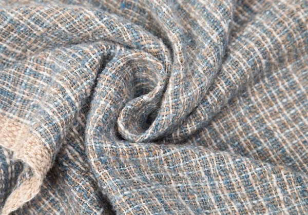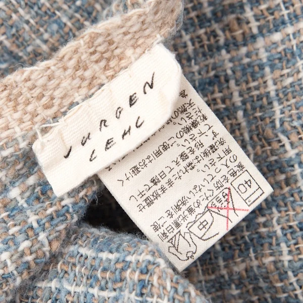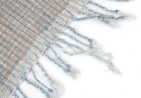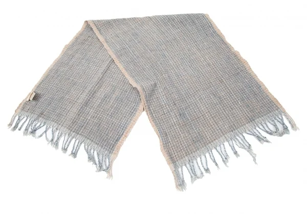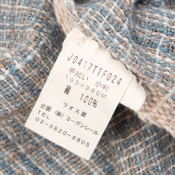 ヨーガンレールJURGEN LEHL コットンツイード小判フリンジ手拭いストール ベージュ水色