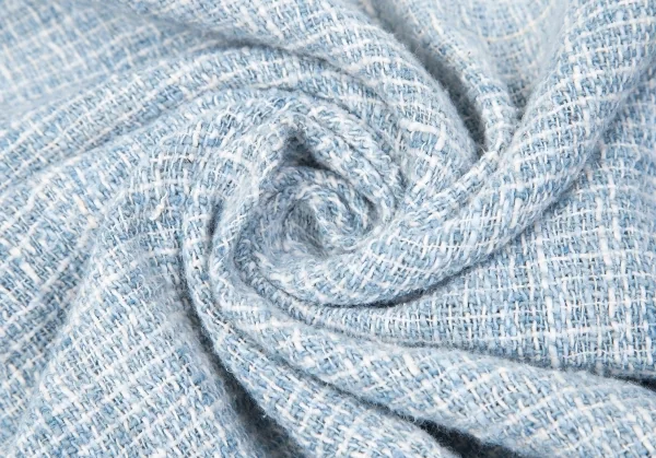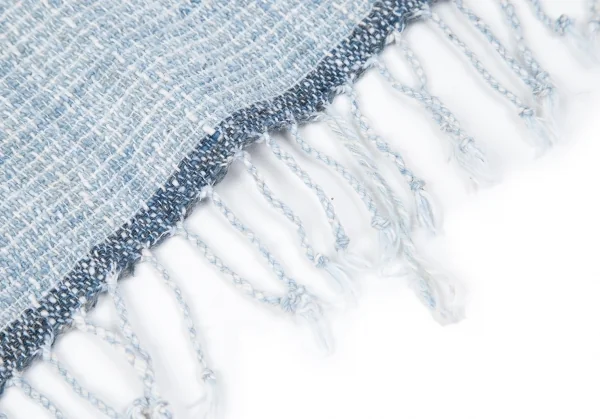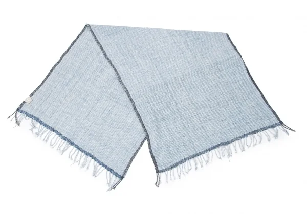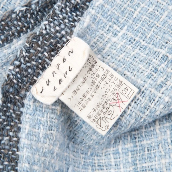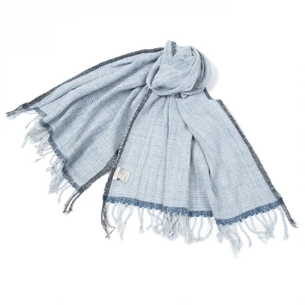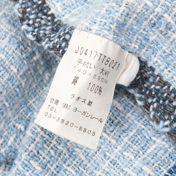 ヨーガンレールJURGEN LEHL コットンツイード大判フリンジ手拭いストール ブルー