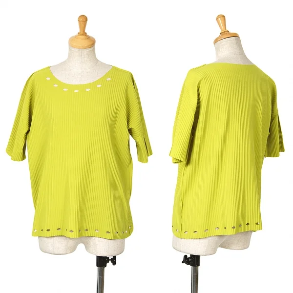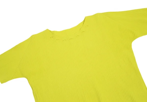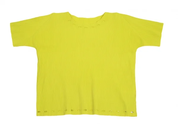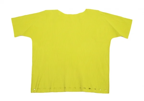 【SALE】イッセイミヤケミーISSEY MIYAKE me A.POC INSIDE プリーツカッティングTシャツ 黄緑M位