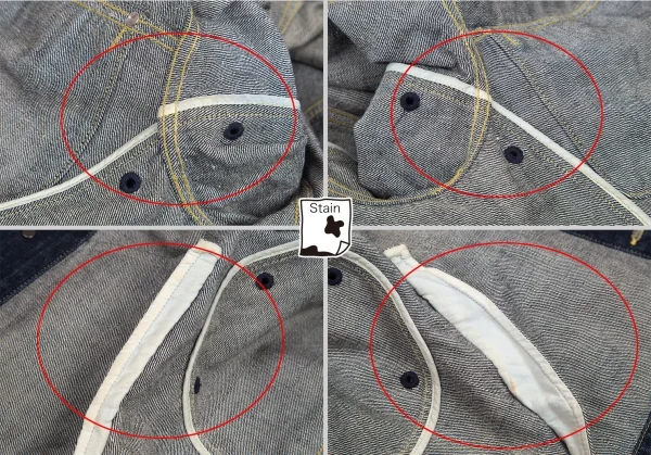 襟裏に薄シミ・右袖、裏地 ポケット袋布・パイピングにシミがあります(写真参照)。その他に目立ったシミ、汚れ、ほつれ等なくいい状態です。クリーニング済み