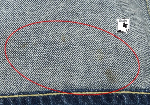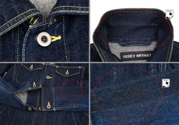 ジャケット:襟裏に薄シミ・右袖、裏地 ポケット袋布・パイピングにシミがあります。パンツ:前右太もも・裏側前右裾・ヒップ裏側にシミがあります。(写真参照)その他に目立ったシミ、汚れ、ほつれ等なくいい状態です。クリーニング済み