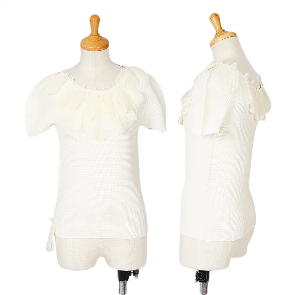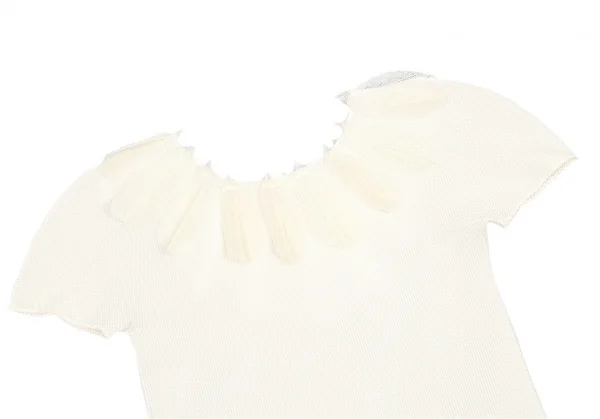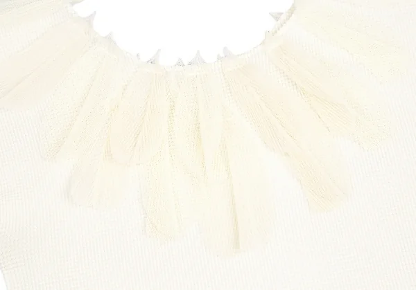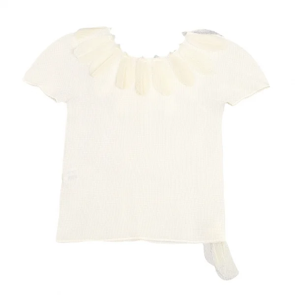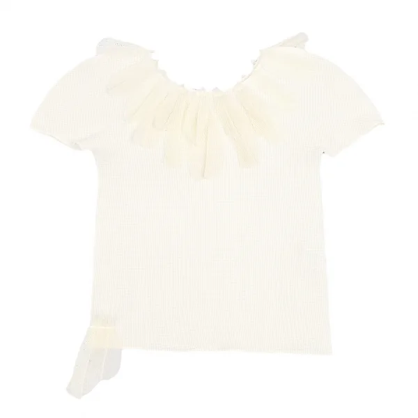 イッセイミヤケ ミーISSEY MIYAKE me メッシュフリル装飾ボックスプリーツTシャツ 生成りM位