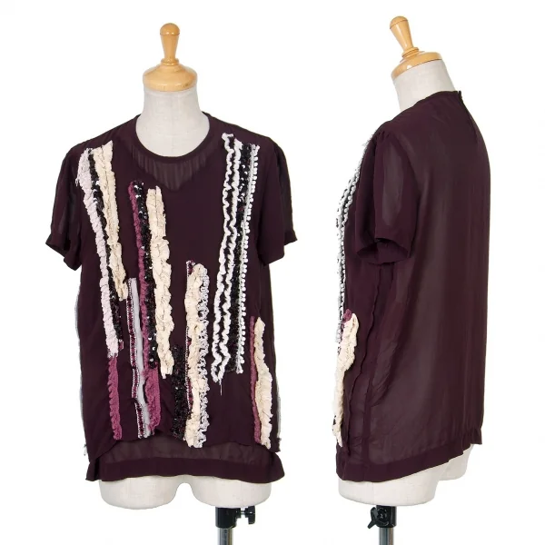 【SALE】トリコ コムデギャルソンtricot COMME des GARCONS 製品染め装飾シフォントップス 小豆S