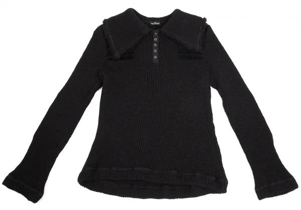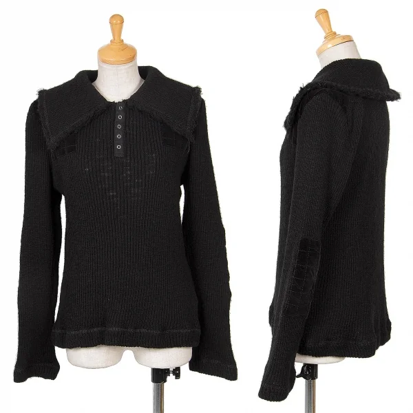 トリコ コムデギャルソンtricot COMME des GARCONS ベロアパッチビッグカラーニット 黒M位
