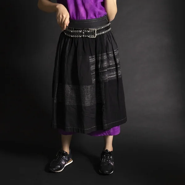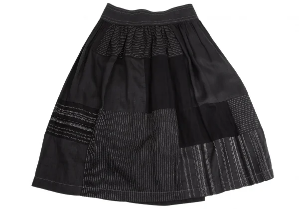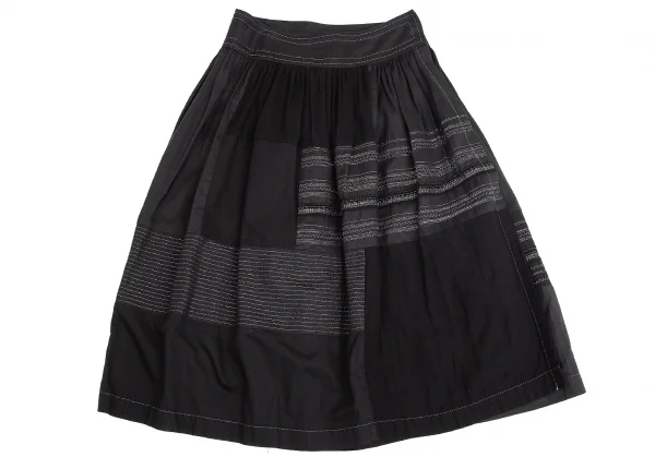 トリコ コムデギャルソンtricot COMME des GARCONS リネンコットン刺し子巻きスカート 黒シルバーラメS