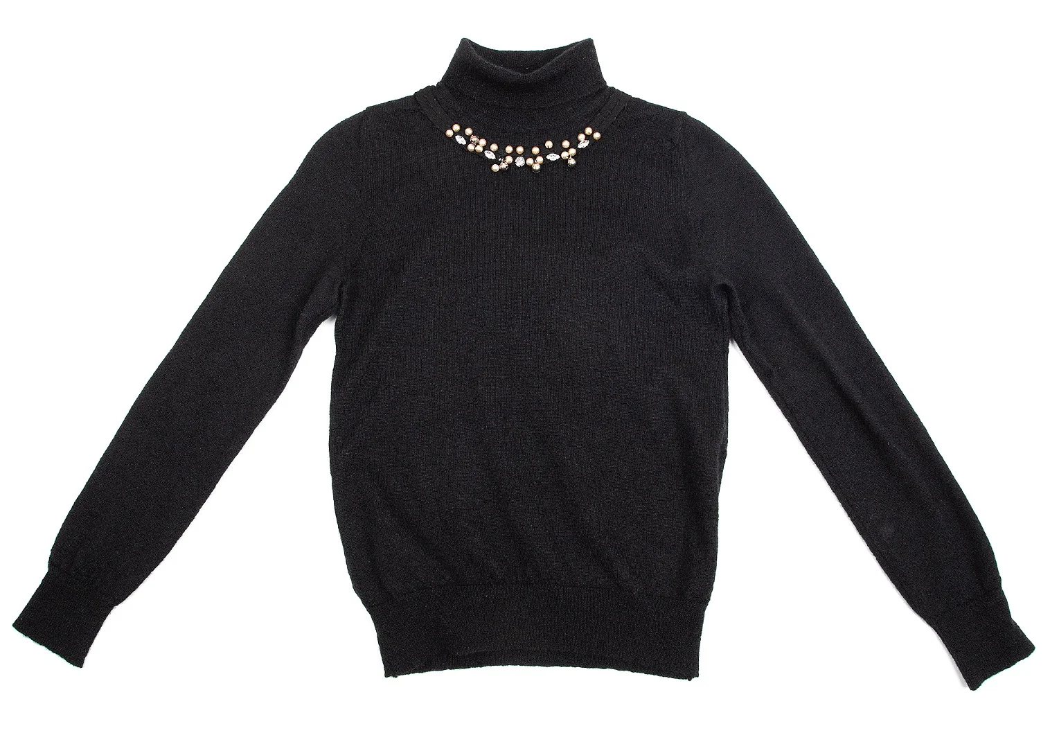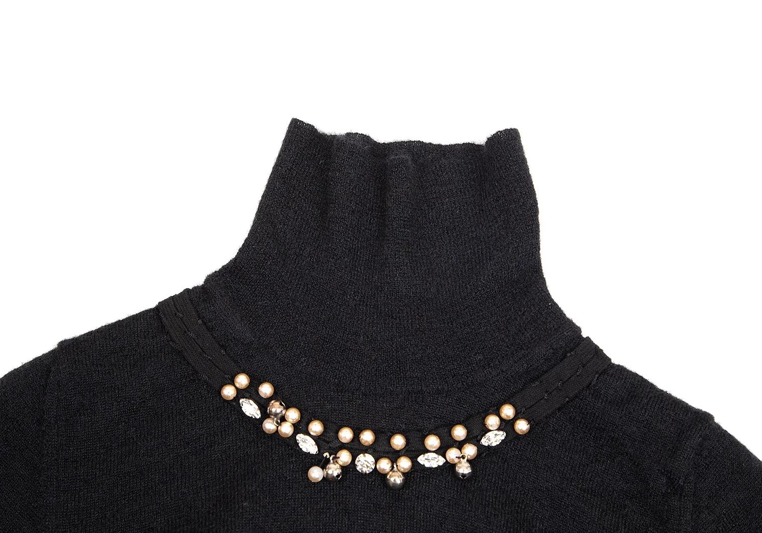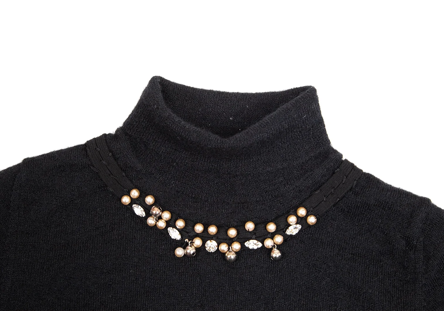【SALE】コムコム コムデギャルソンCOMME des GARCONS パール装飾ハイネックモヘヤ混セーター 黒S