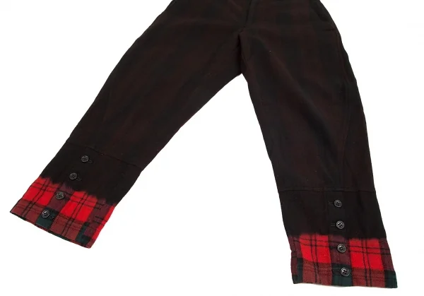 ブラック コムデギャルソンBLACK COMME des GARCONS 染めチェックジョッパーパンツ 茶赤緑S