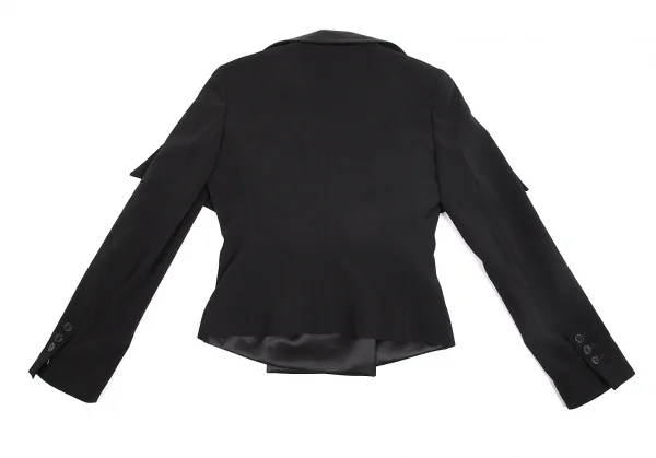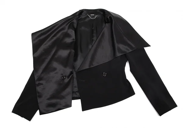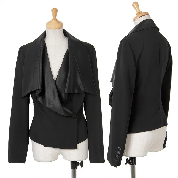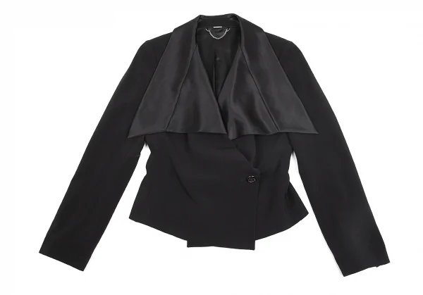 ヴィクター&ロルフVIKTOR&ROLF シルクサテン切替ドレープラペルダブルジャケット 黒40