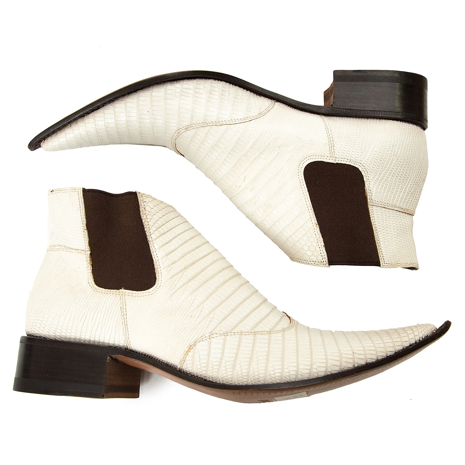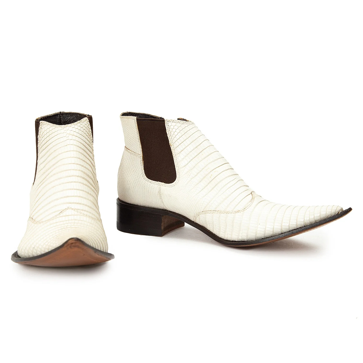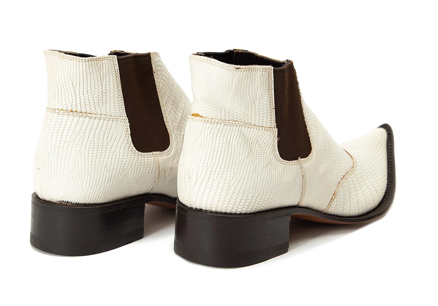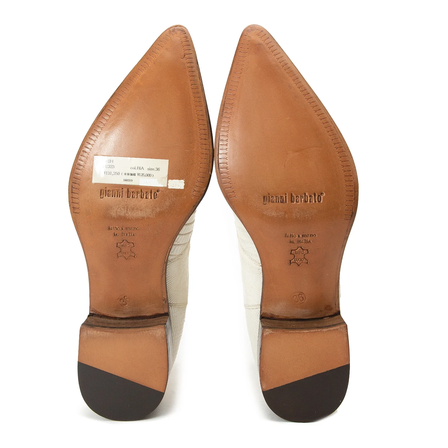 ジャンニバルバートgianni barbato クロコ型押しポインテッドトゥレザーブーツ オフ茶36(22.5位)