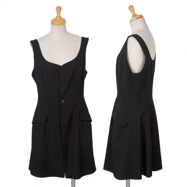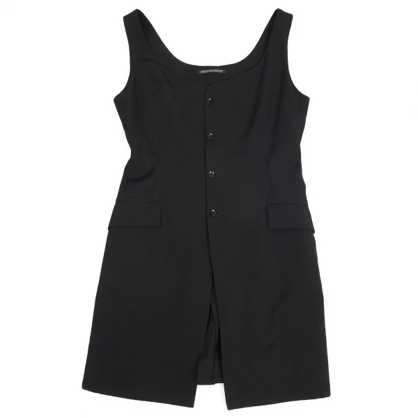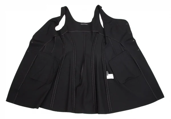 ヨウジヤマモト ノアールyohji yamamoto NOIRウールギャバデザインロングベスト 黒1
