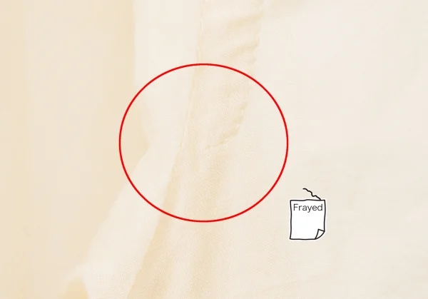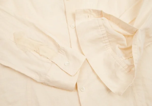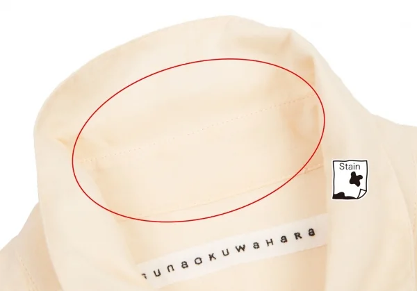 透け感のある生地です。襟裏に汚れ、右脇にステッチのほつれがあります(画像参照)。その他少し毛羽立ちがありますが、目立ったシミ、汚れ、ほつれ等ありません。クリーニング済み