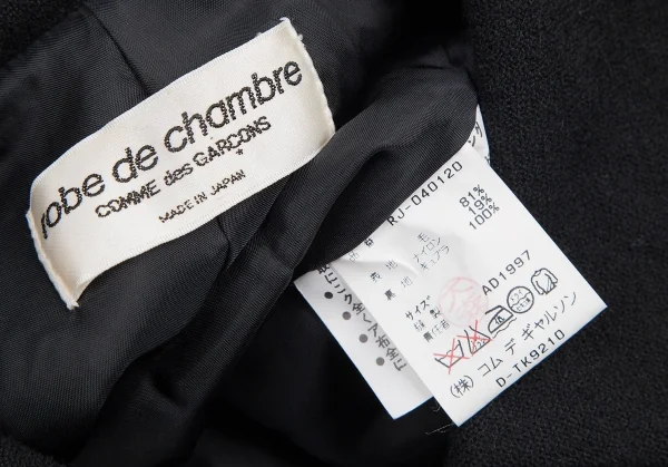 ローブドシャンブル コムデギャルソンrobe de chambre COMME des GARCONS ウールナイロンホック留めドルマンセットアップスーツ 黒M位