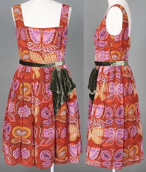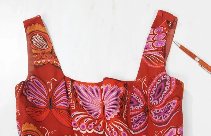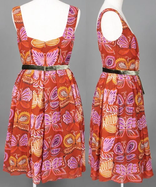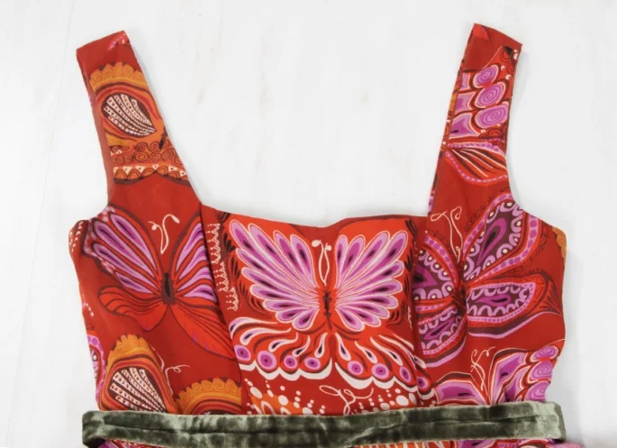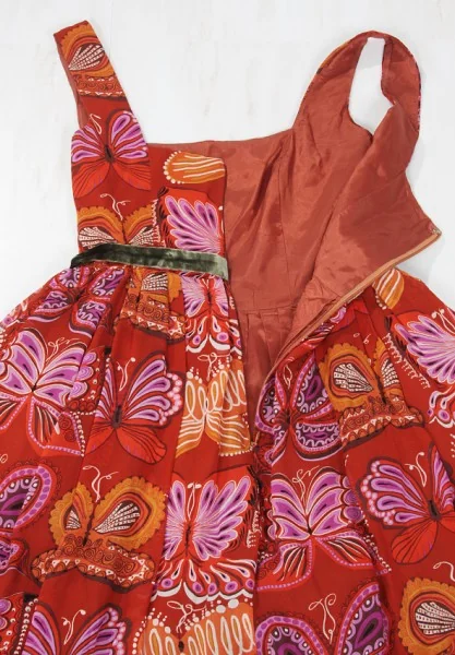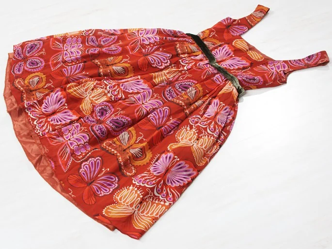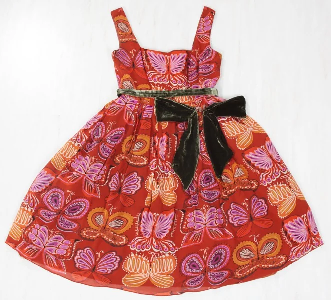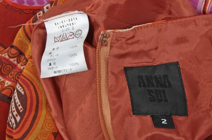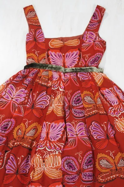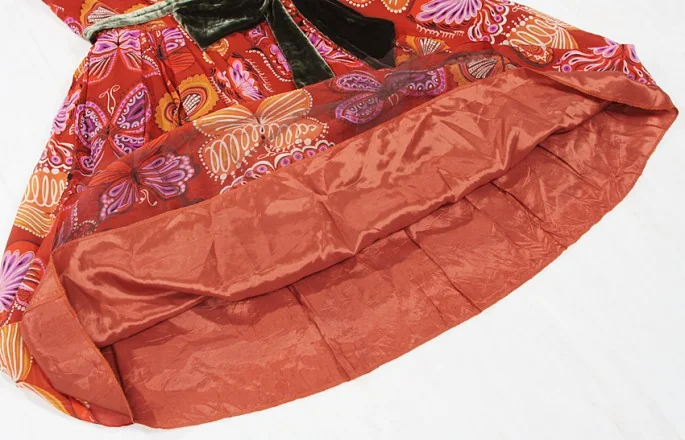 アナスイANNA SUI 蝶柄シルクワンピース エンジ 茶2