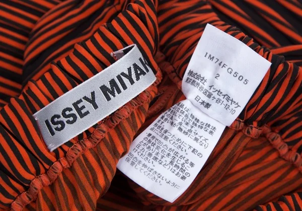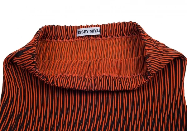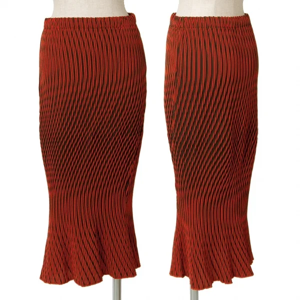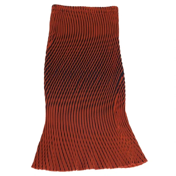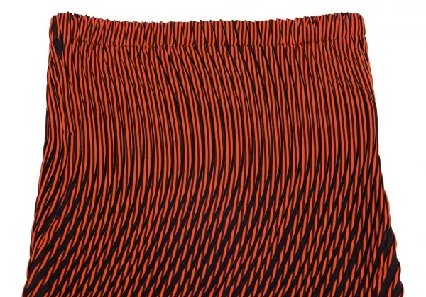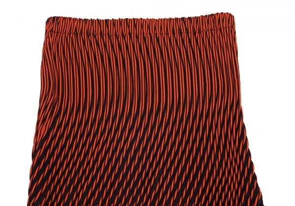 イッセイミヤケ ISSEY MIYAKE 波プリーツロングスカート オレンジ黒2