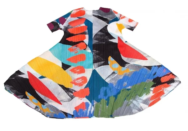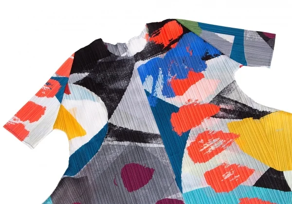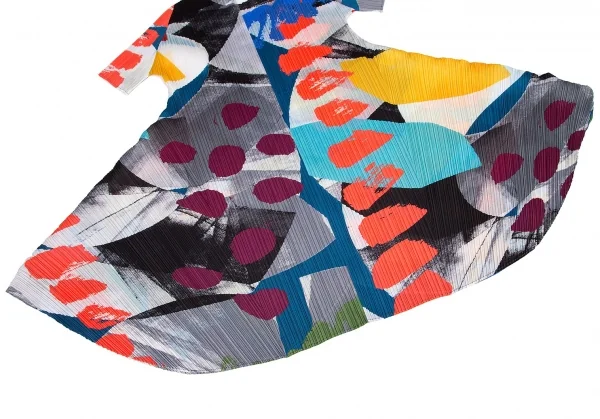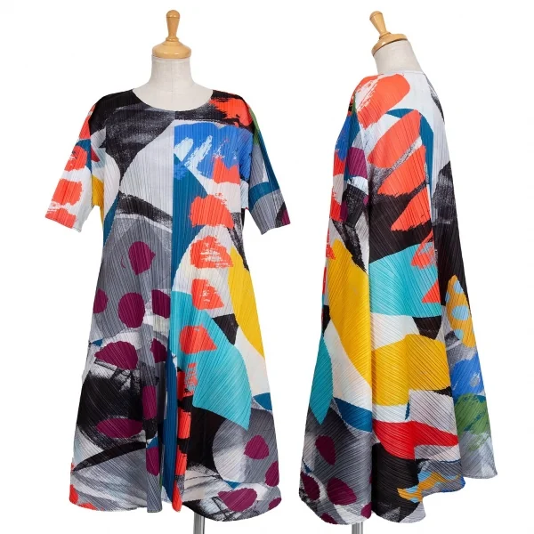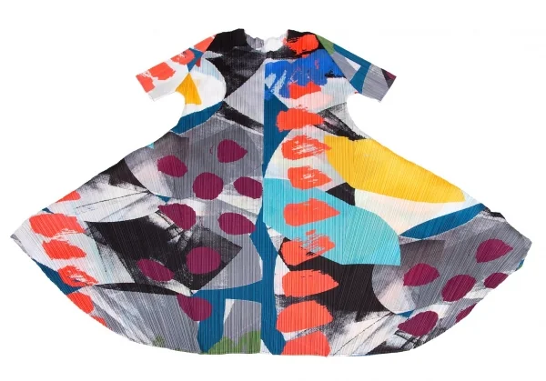 プリーツプリーズ イッセイミヤケ PLEATS PLEASE ISSEY MIYAKE 半袖プリントデザインワンピース マルチ3