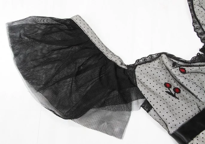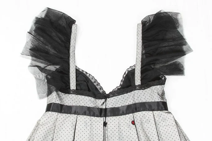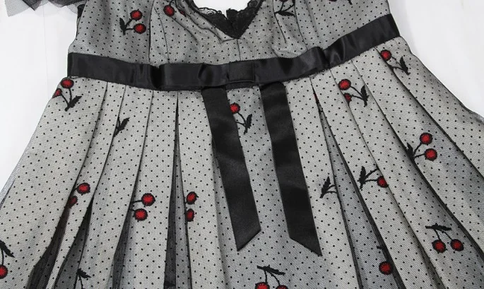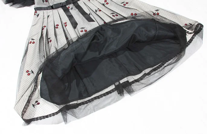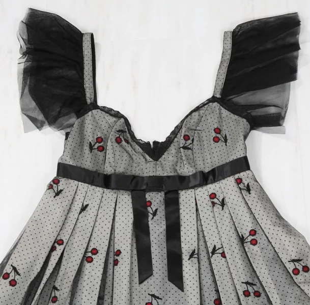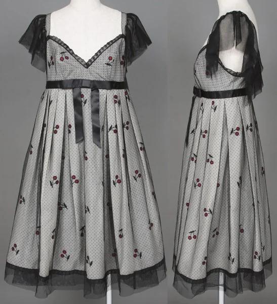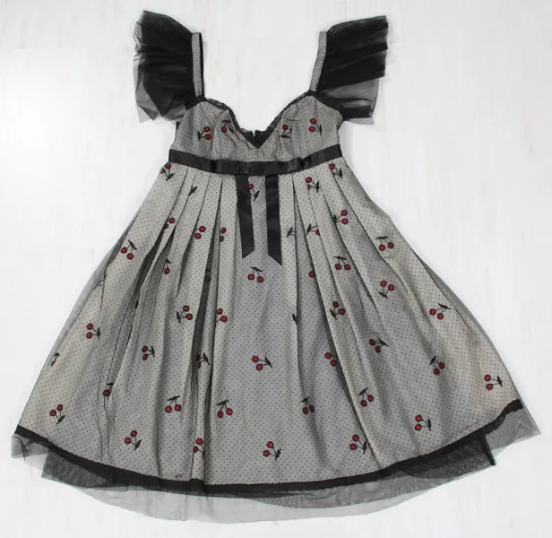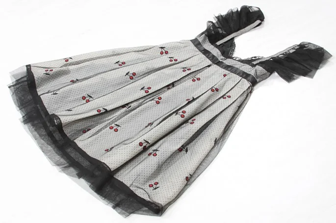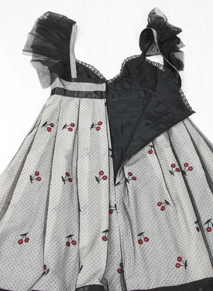 【50%OFF!】アナスイANNA SUI チュール重ねチェリー柄ワンピース 黒白2