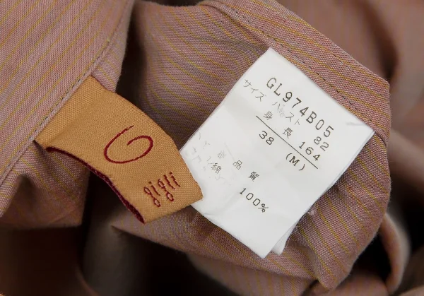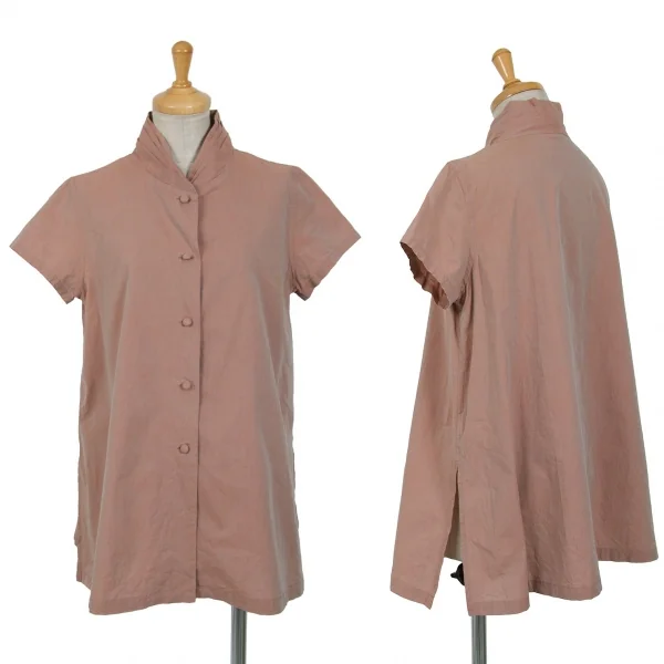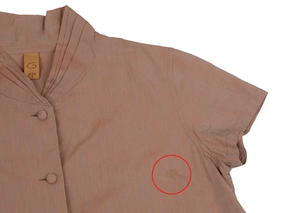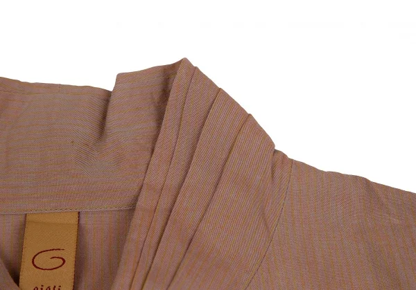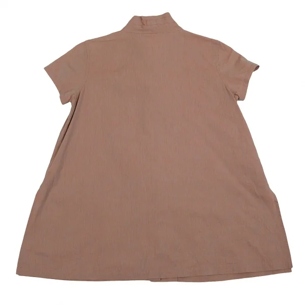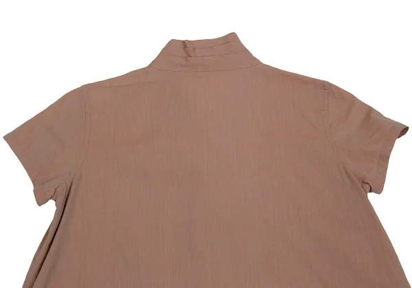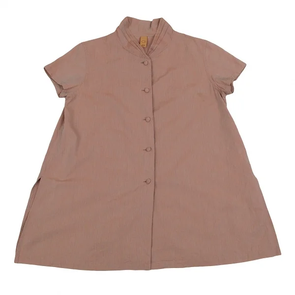 ジジリgigli コットンレイヤースタンドカラーピンストライプ半袖シャツ ピンクカラシ38(M)
