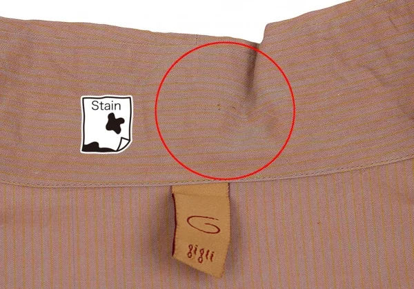 襟裏に点シミあり、左脇付近にシミがあります(画像参照)。その他目立った汚れ、ほつれ等ありません。クリーニング済み