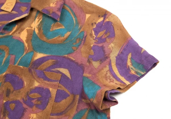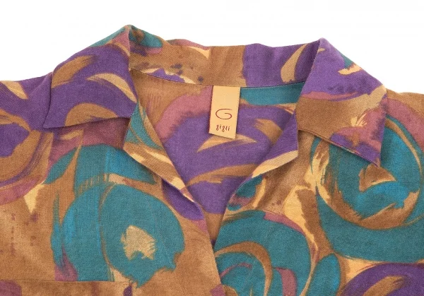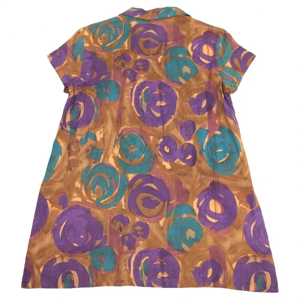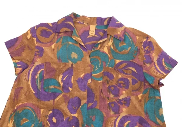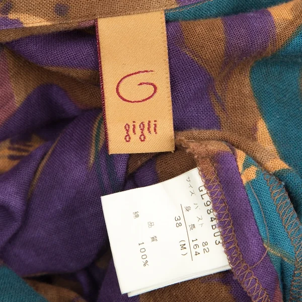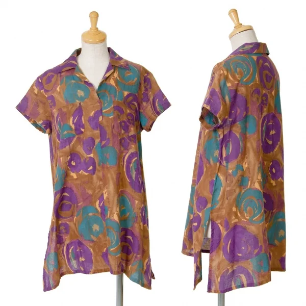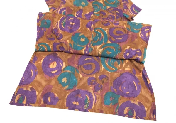 【SALE】ジジリgigli コットンマーブルプリント半袖チュニック 茶紫38(M)