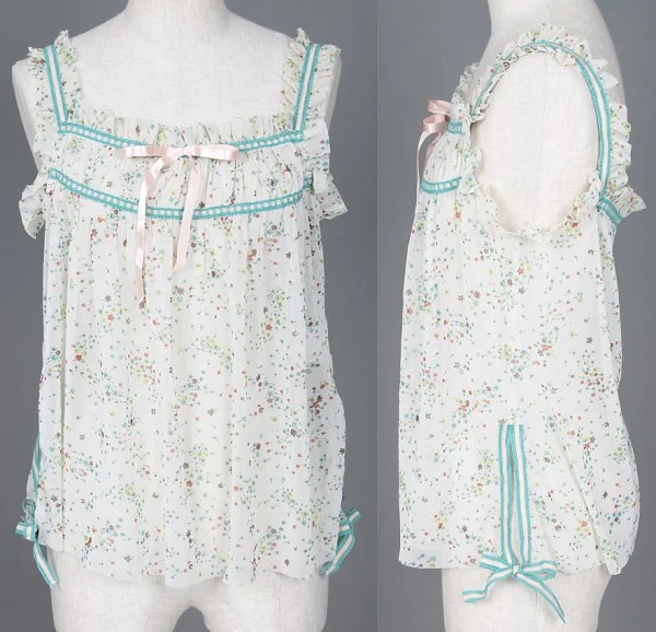 アナスイANNA SUI 花柄チュールキャミソール 薄グリーンP