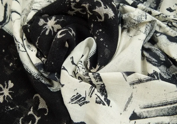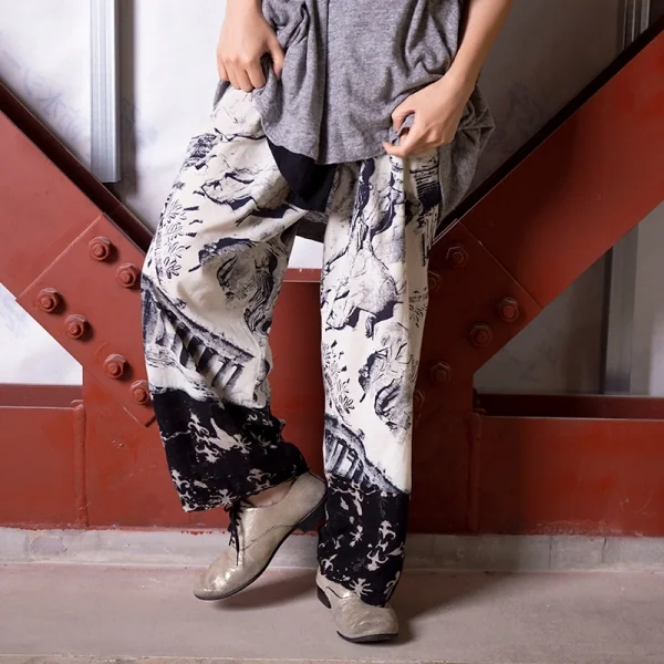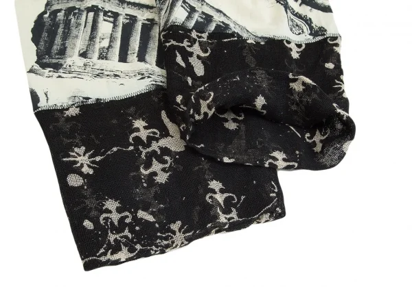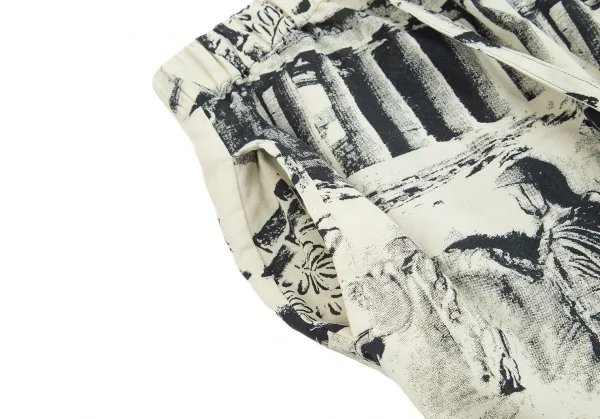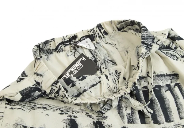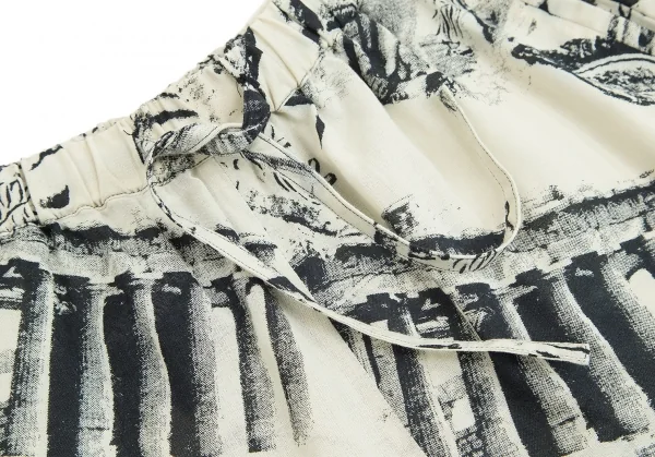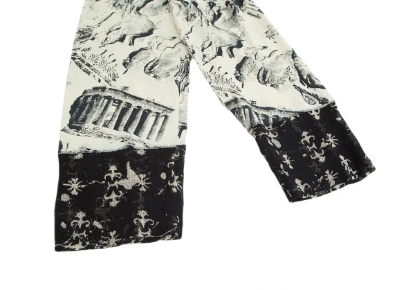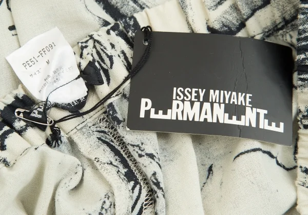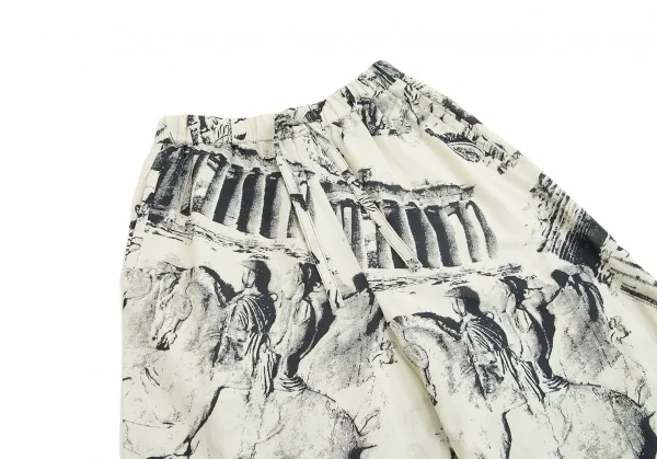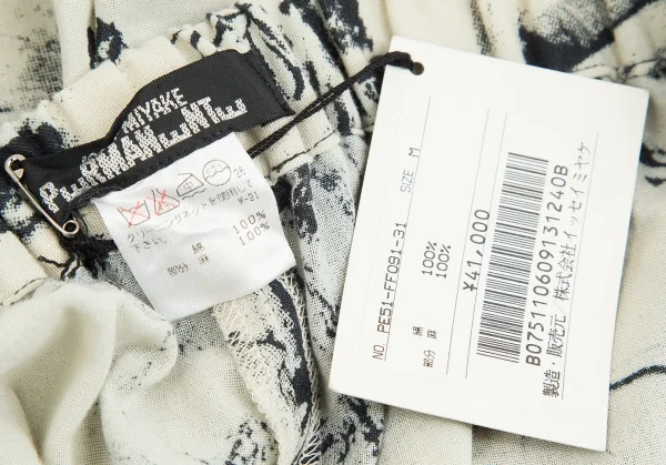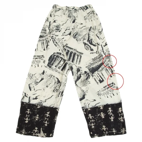 イッセイミヤケペルマネンテISSEY MIYAKEPERMANENTE ギリシャプリント裾メッシュ切替パンツ アイボリー黒M