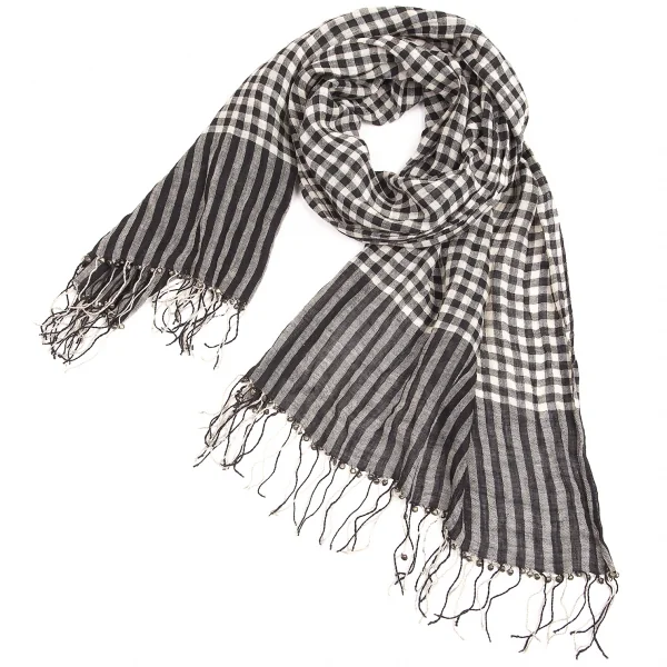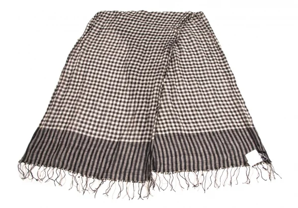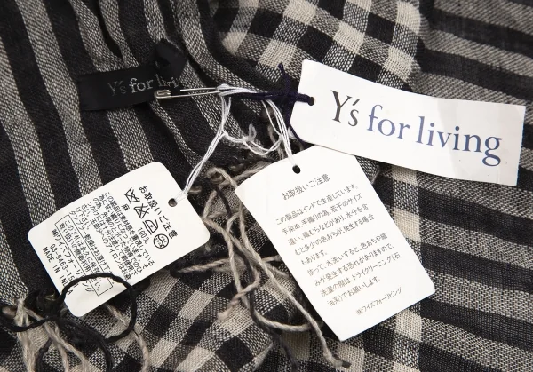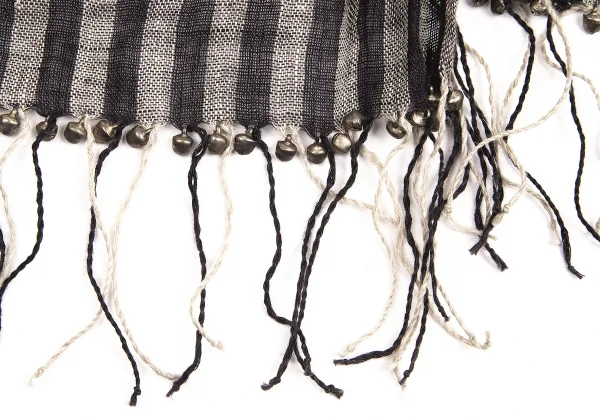 新品!ワイズフォーリビングY's for living インド手織りリネン鈴付きフリンジストール 黒ベージュ