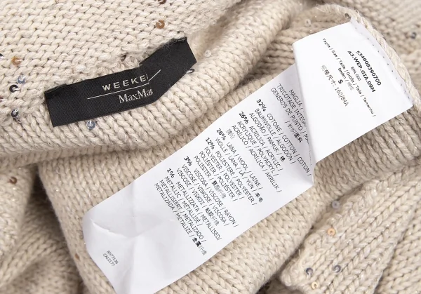 マックスマーラ ウィークエンドMAX MARA WEEKEND スパンコールニットジャケット 生成りシルバーゴールドS