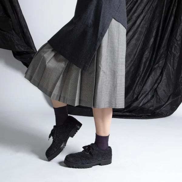 ブラック コムデギャルソンBLACK COMME des GARCONS 千鳥柄プリーツウールスカート グレーXS