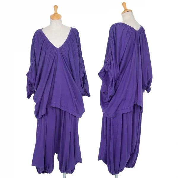 イッセイミヤケ ミーISSEY MIYAKE me ウエスト切替ワイドペンギンサルエルパンツ 紫M位