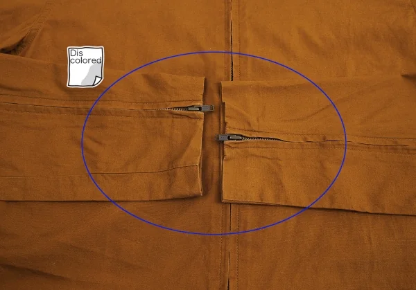 首元・首裏・袖先・袖裏に色褪せがあります(画像参照)。その他に目立ったシミ、汚れ、ほつれ等ありません。クリーニング済み