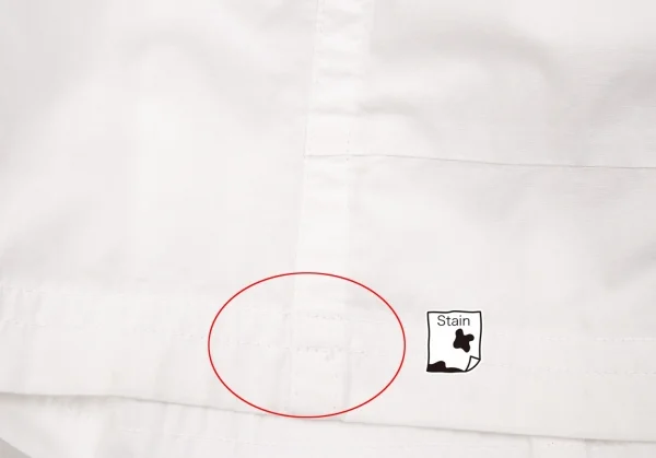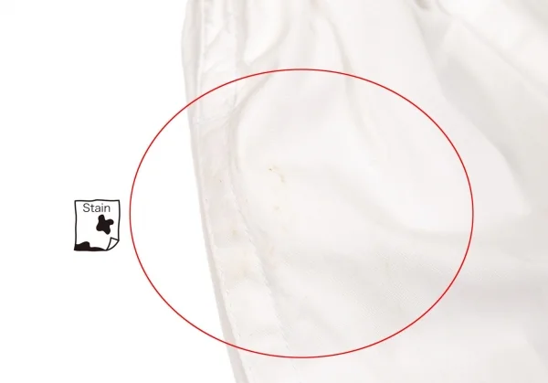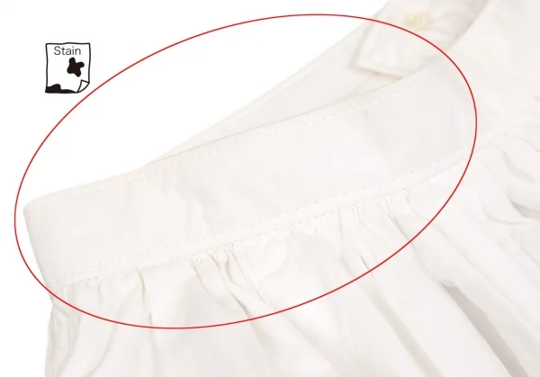 ウエスト先・前上部、右ポケット付近・裾裏・後裾に薄汚れがあります(画像参照)。その他に目立ったシミ、汚れ、ほつれ等ありません。クリーニング済み