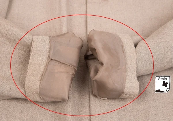 襟裏・袖裏に薄汚れがあります(画像参照)。その他に目立ったシミ、汚れ、ほつれ等ありませんクリーニング済み。※肩パット入りです。