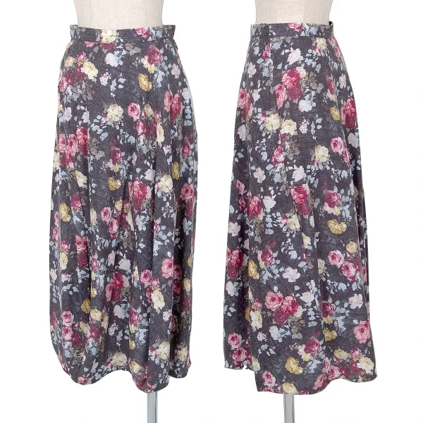 【SALE】トリココムデギャルソンtricot COMME des GARCONS 花プリント切替フレアーコクーンスカート グレーS