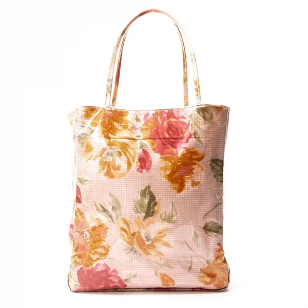 トリココムデギャルソンtricot COMME des GARCONS 花柄チェックビニールカバートートバッグ ピンク