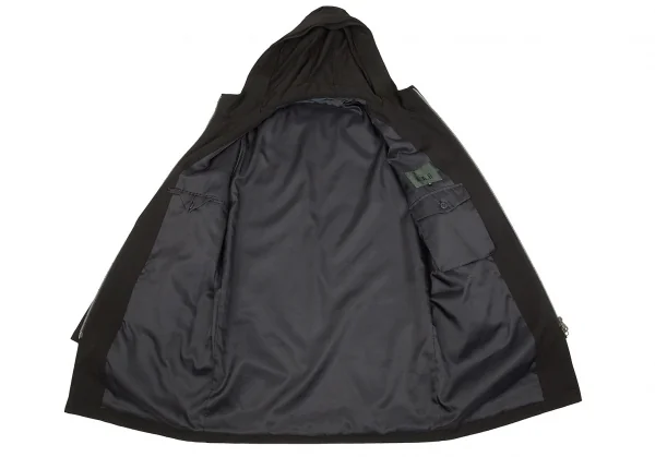 ヨウジヤマモト ダーバンYohji Yamamoto DURBAN A.A.R ウールギャバジップアップフーデッドハーフコート 黒M
