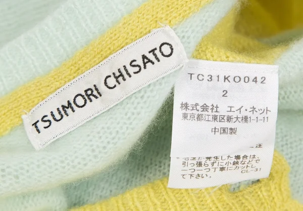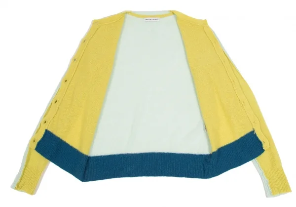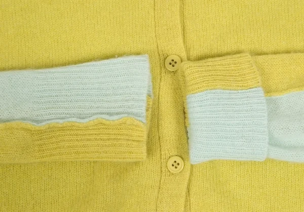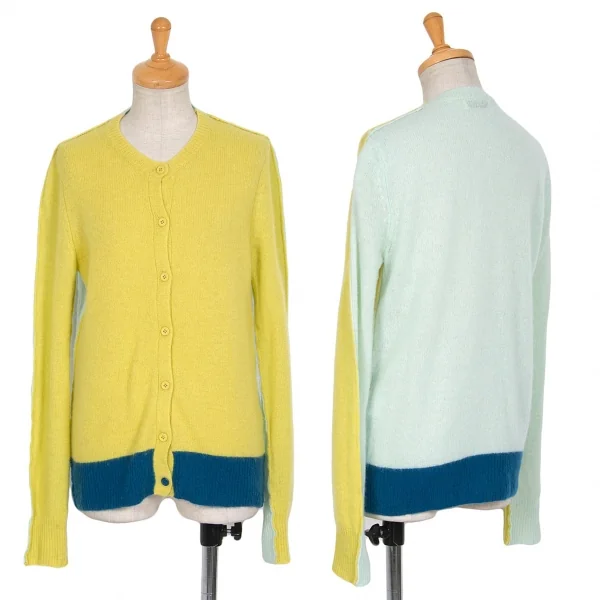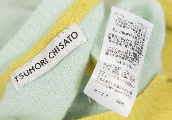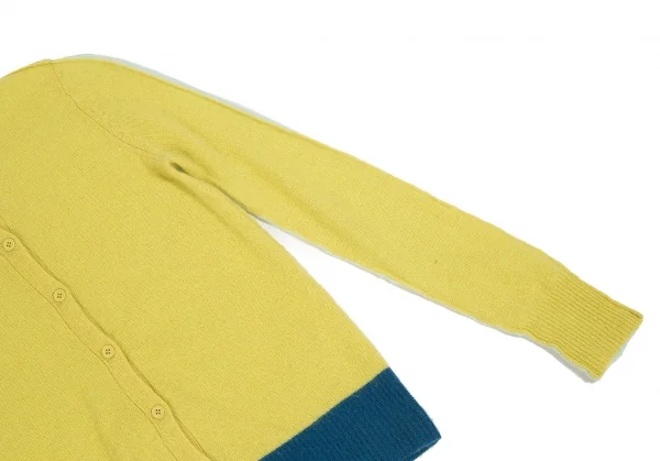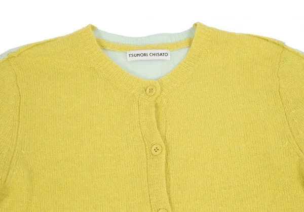 ツモリチサトTSUMORI CHISATO カシミヤカラーブロック切り替えカーディガン 黄ペパーミントグリーン2