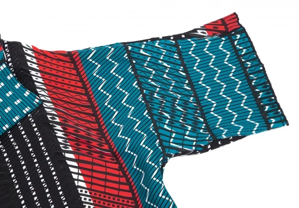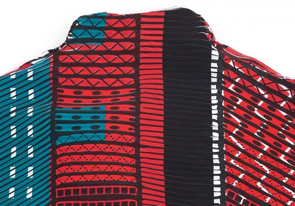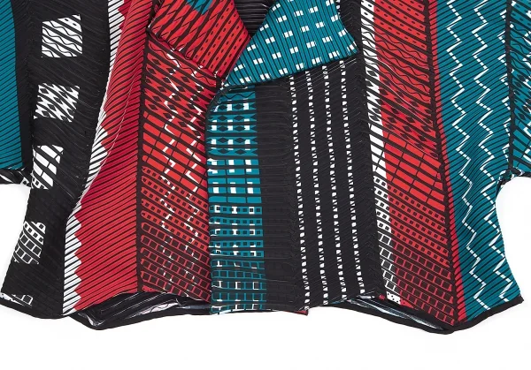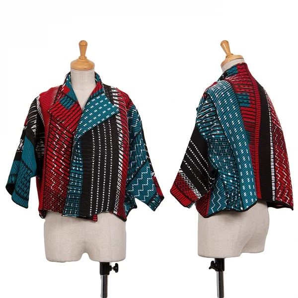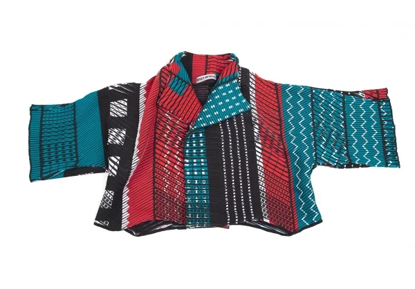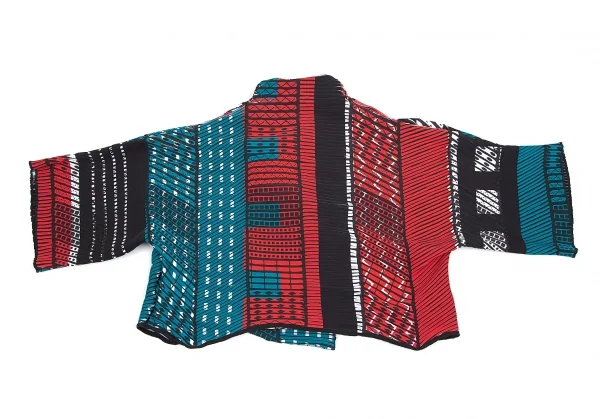 イッセイミヤケISSEY MIYAKE プリントプリーツ切替半袖ショートボタンレスジャケット マルチ3位